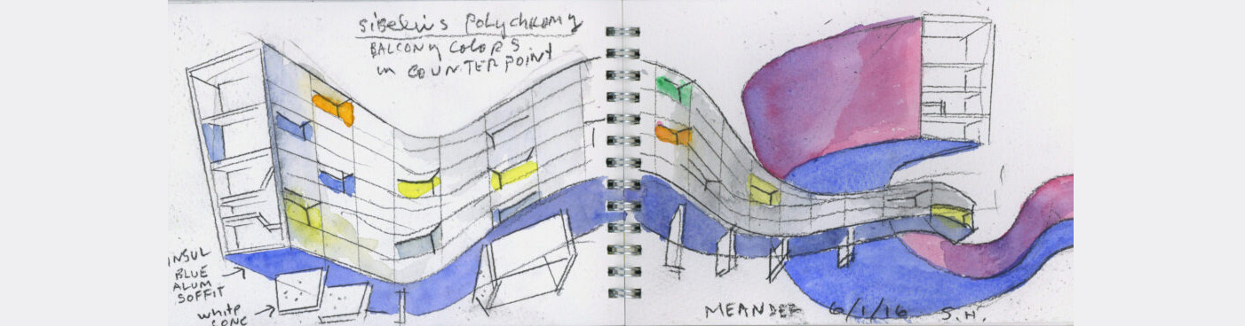 Watercolor sketch for Meander Housing by Steven Holl Architects, Helsinki, Finland | Popular Choice Winner, Sustainable Multi-Unit Residential Building, 13th Architizer A+Awards