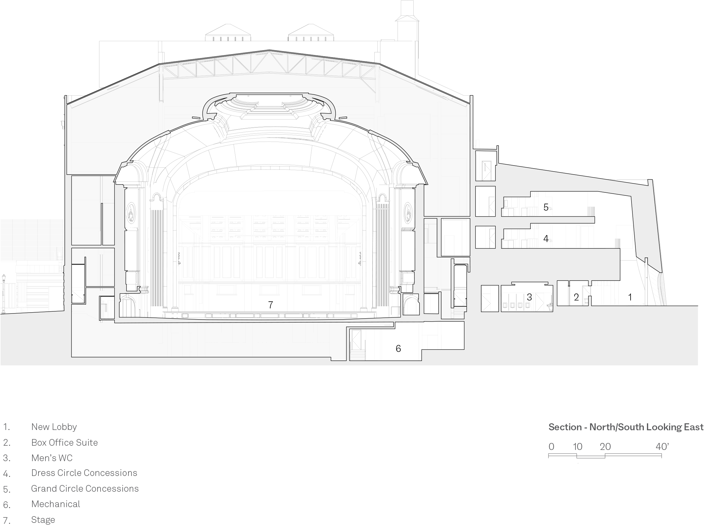 Section drawing through Powell Hall with Snøhetta’s new addition on the right; drawing courtesy of Snøhetta