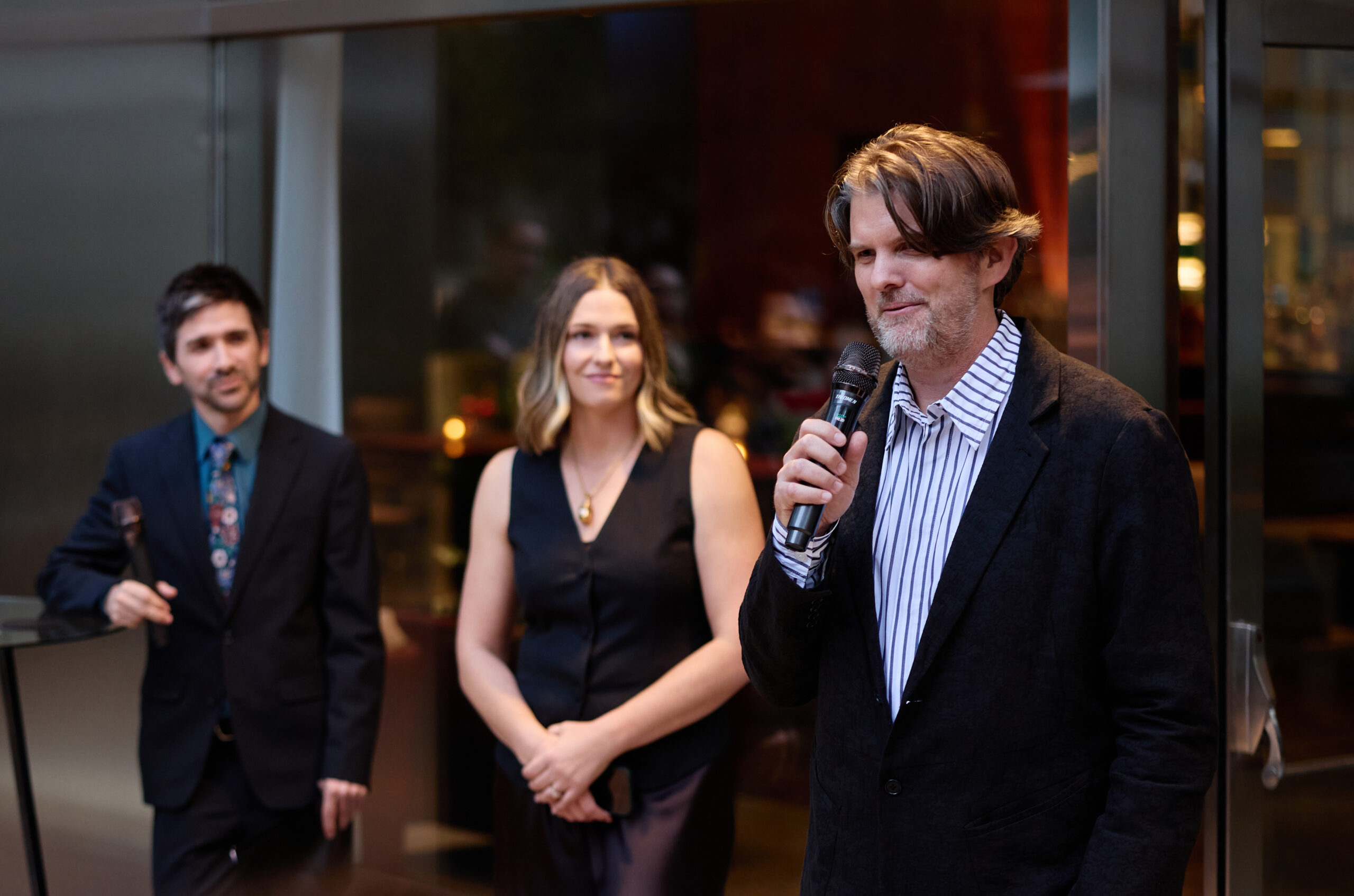 The evening began with opening remarks from Ron Radziner, Co-Founder and Design Partner of Marmol Radziner. Standing at the heart of the space he helped create, Radziner spoke about the challenge and privilege of working within such a historic landmark:
