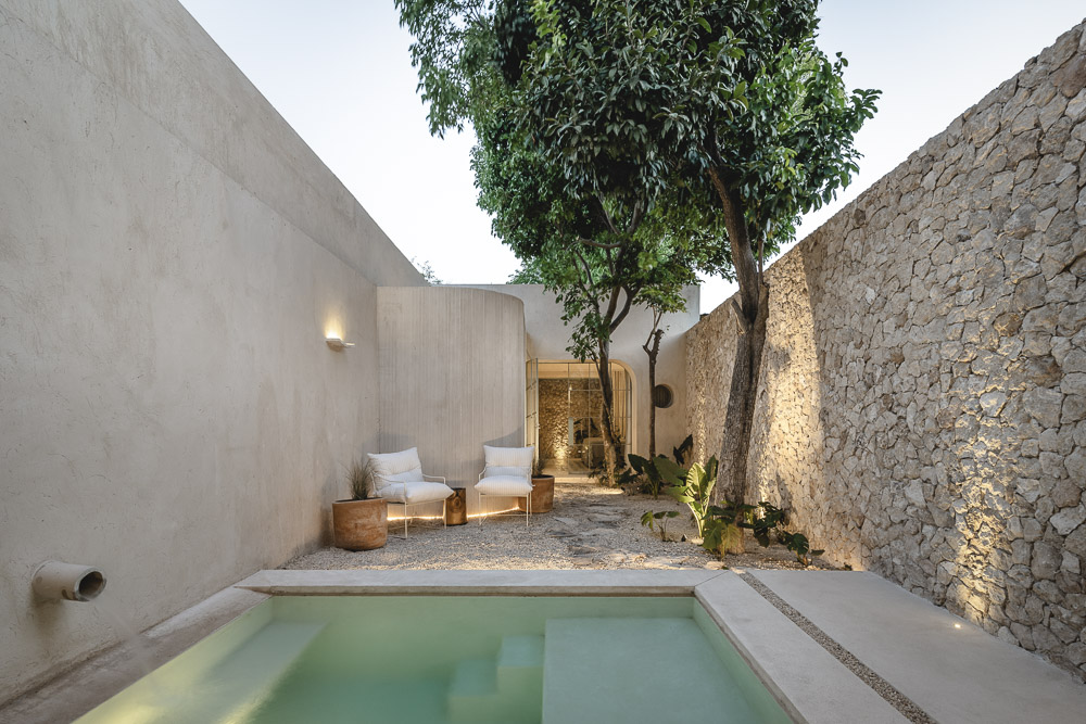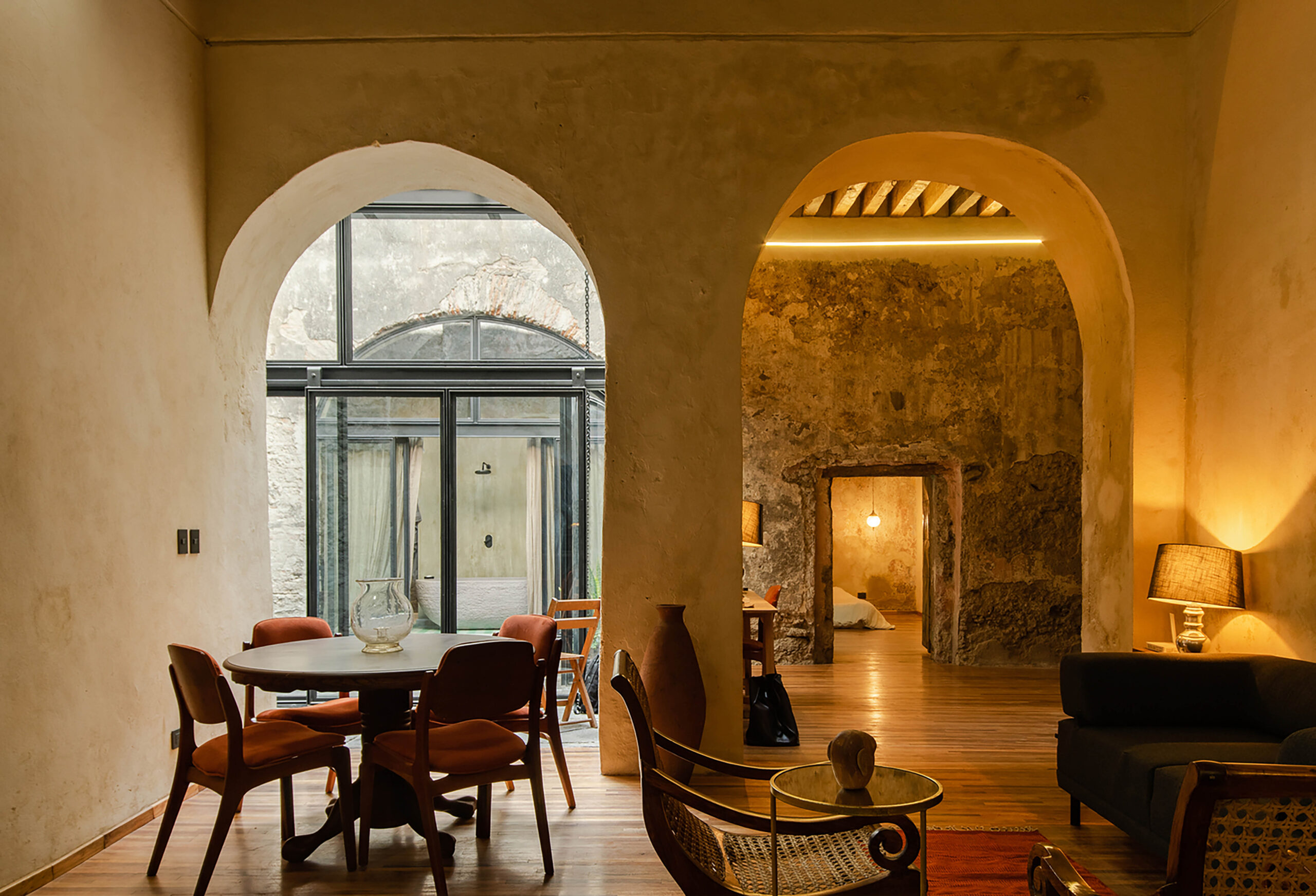 Casa Lohr stands on the remains of a 19th-century colonial house, where restoration and decay exist side by side. The project preserves fragments of the original structure, using them as anchors for a new architectural rhythm. Walls in ruin define views toward the central patio and pool, turning the marks of erosion into focal points. Materials such as stone from the site, burnished white cement and exposed joists reveal the building’s layered construction. Light filters through arches and voids, tracing the passage of time across surfaces. Rather than hiding deterioration, the house builds upon it, allowing history to guide the design and shape a renewed sense of permanence.