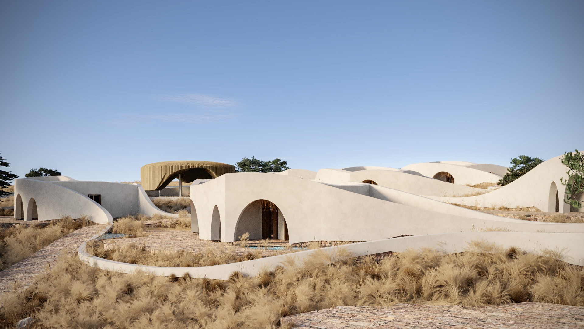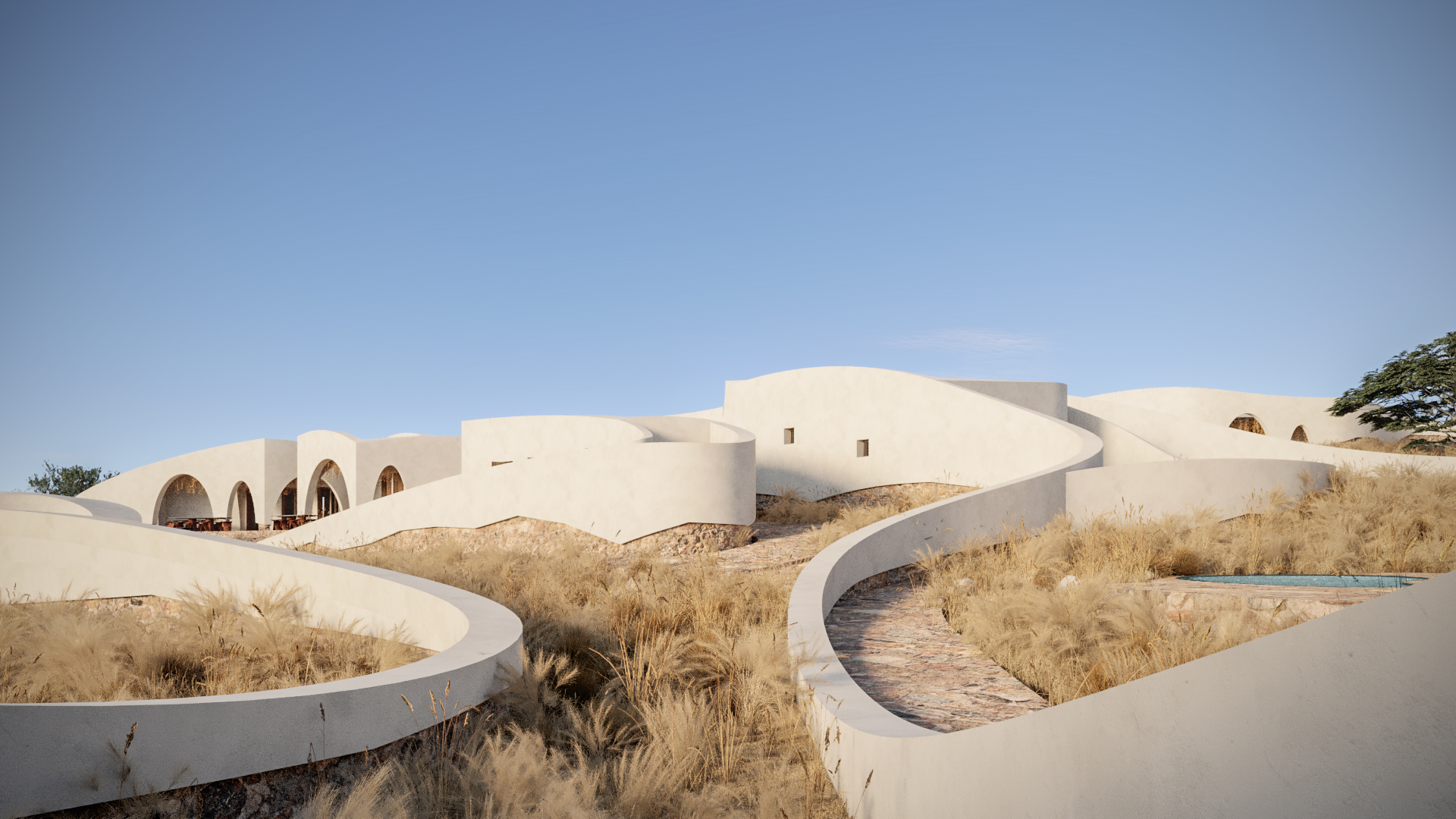 Paros Hotel draws from the eroded landscapes and ancient ruins of the Cyclades, translating their soft geometry into a contemporary resort. Its white curving walls rise like wind-sculpted dunes, forming a rhythm of light and shadow across the façade. Arched openings cut through the mass, framing views of sea and sky while revealing traces of the island’s vernacular past. The architecture feels shaped by time, as though carved by the same forces that defined the surrounding cliffs. Stone, wood and plaster form a restrained palette that allows the structure to age naturally within its setting.