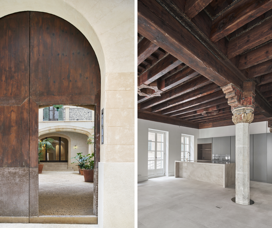 Can Santacilia revives two interconnected buildings in Palma’s old town, tracing over eight centuries of architectural history. The project restores lost courtyards, arches and façades while preserving the marks of transformation left by successive eras. Instead of seeking an idealized past, the renovation values each layer of intervention, allowing time to remain visible in surfaces and structure. Local materials such as stone, bronze and linen define a quiet material palette that connects old and new. Patina, texture and proportion guide the atmosphere, where courtyards once again anchor the plan as social and spatial centers. The result is a living restoration that acknowledges history as something continuous rather than complete.
