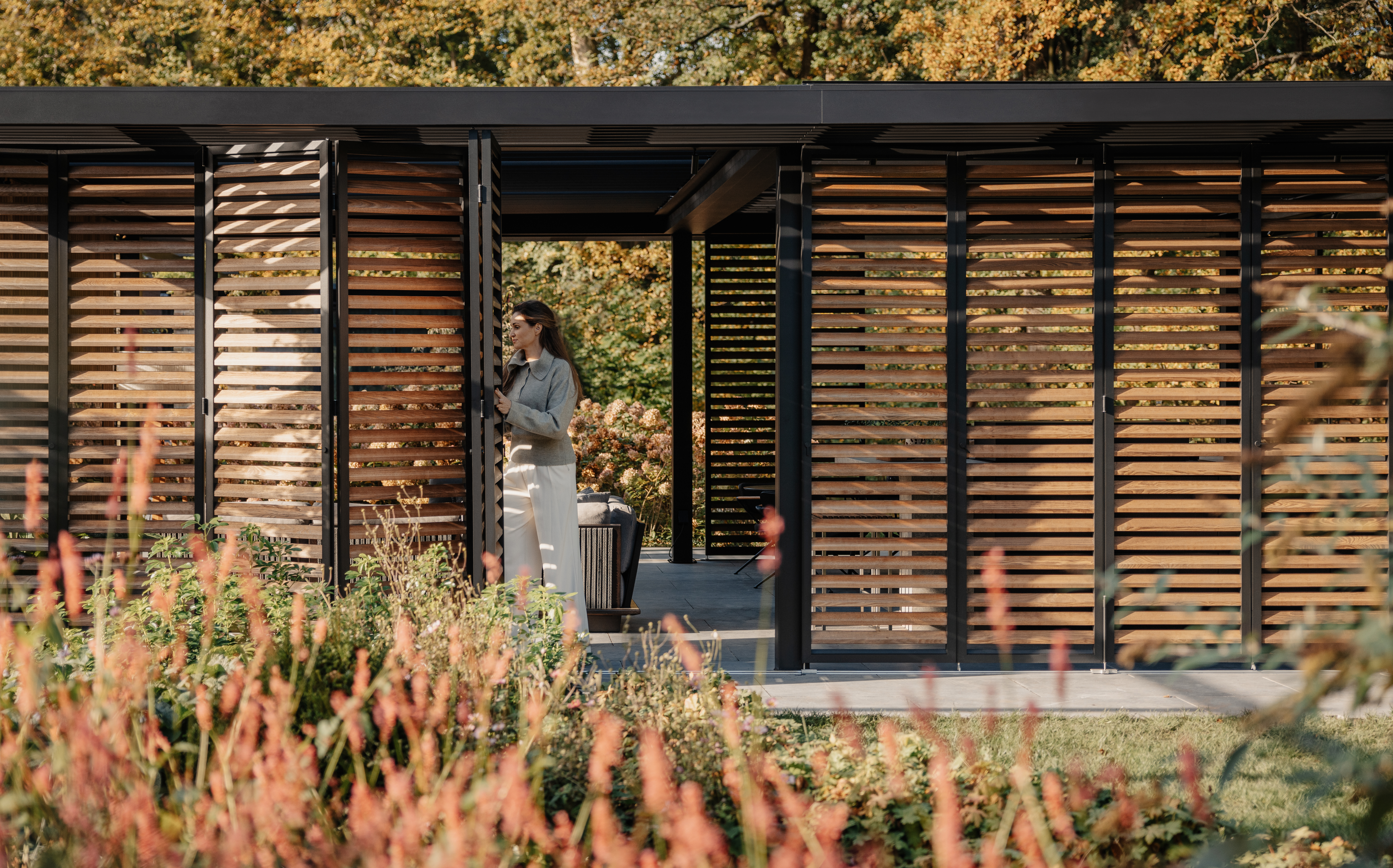 Amani by Renson was conceived as a deliberate departure from the uniformity of traditional bladed roofs, those rigid “tables with four legs and a top,” as designer Joost De Frene put it. Instead of another technical pergola, the ambition was to create a structure centered on well-being: not just an outdoor shelter, but a place you want to be in.
