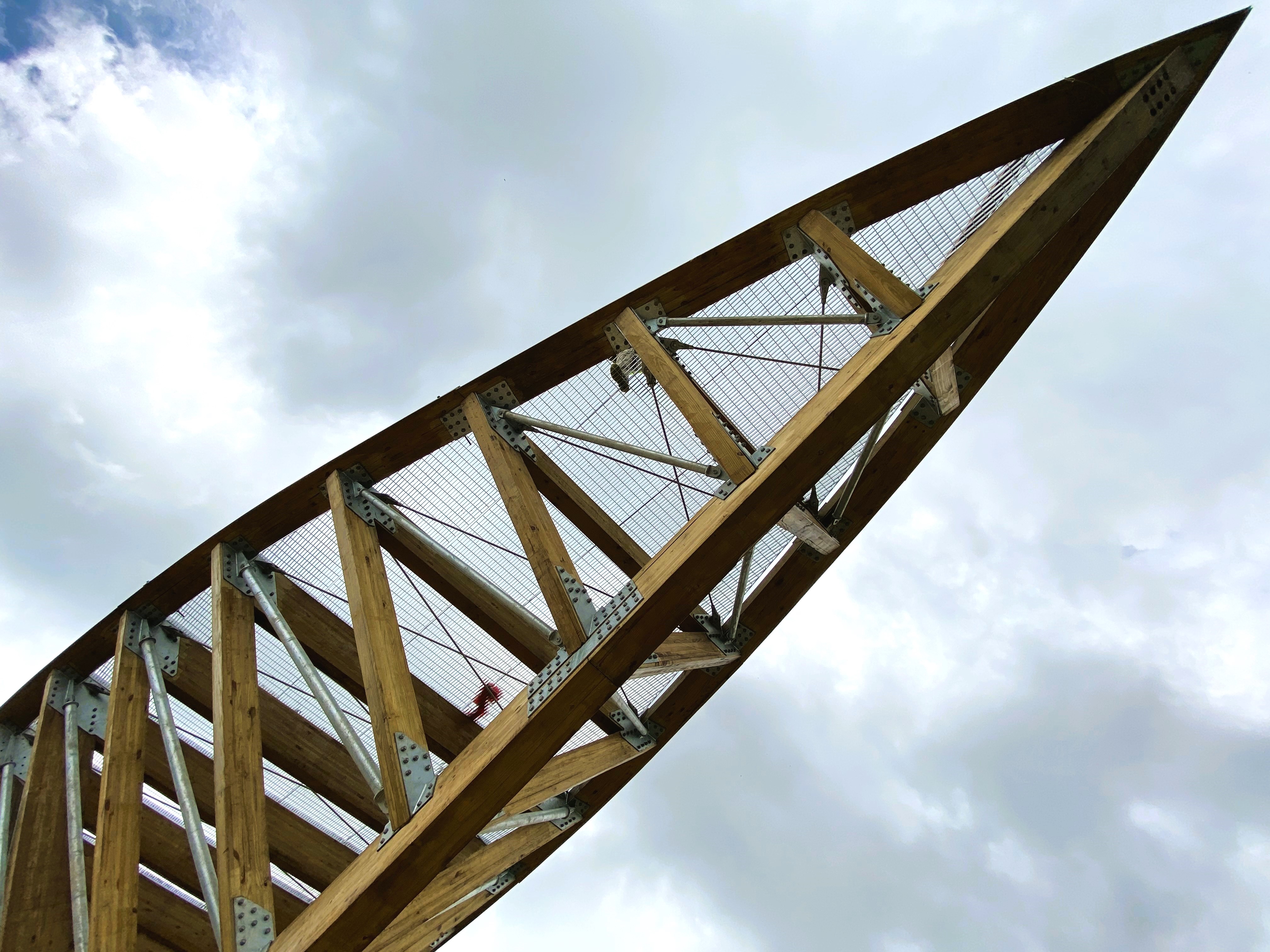 The “hollowed” design of the timber ribs has a dual purpose; the strategic gaps between the glulam members significantly reduce wind pressure and snow loads at high altitudes while creating a permeable envelope. This allows visitors on the lower deck to feel sheltered by the warmth of the wood.