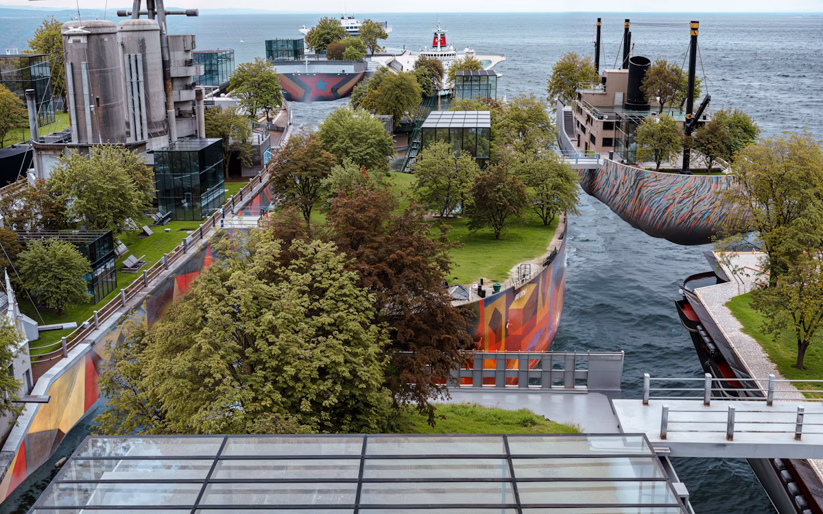 Some proposals take adaptation to extremes. Studio Andrea Dragoni’s TERRAS MEDITERRANEAS, for example, imagines using decommissioned ships to create a floating neighborhood for Rome. As part of the proposal, the city becomes a literal ship, floating freely in the sea, a poetic vision reminiscent of José Saramago’s The Stone Raft, where the Iberian Peninsula separates from the mainland and sails into the unknown. The project suggests freedom, flexibility and a city responsive to rising seas or crowded land.